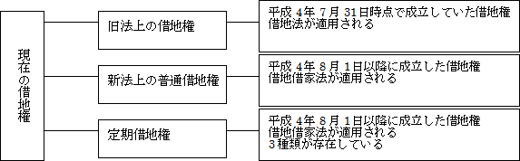 現在、借地権は3種類が混在していますが、本サイトで借地権という場合には、旧法上の借地権を指していると解釈していただきたく、御願いいたします。